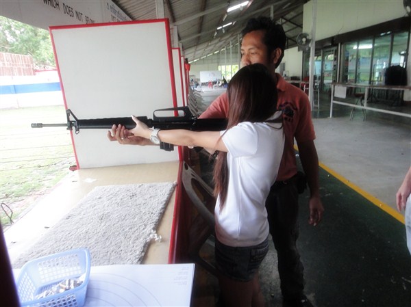 Went shooting range. Boyf wanted to shoot! Spent 200baht for taxi.